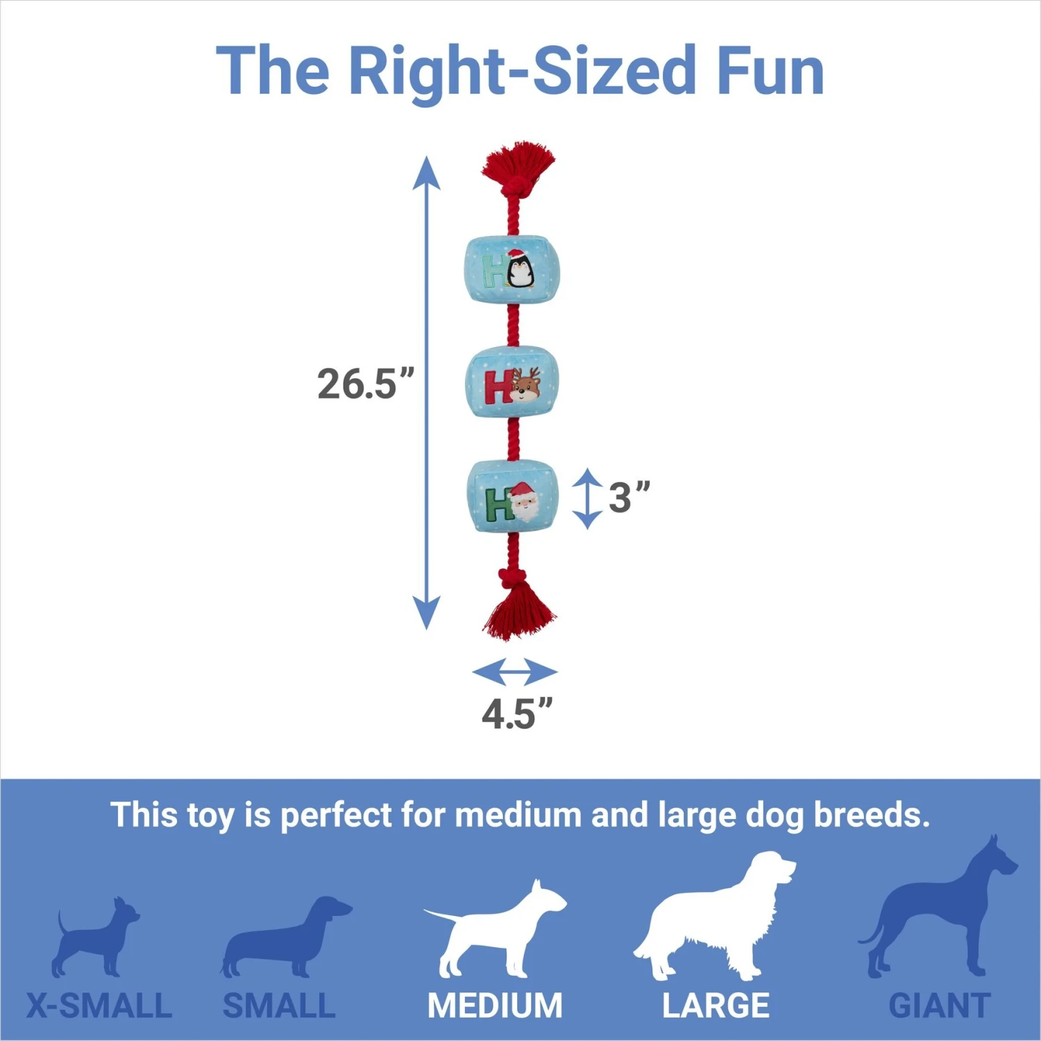 - Holiday plush cubes toy is best suited for medium and large size dog breeds.