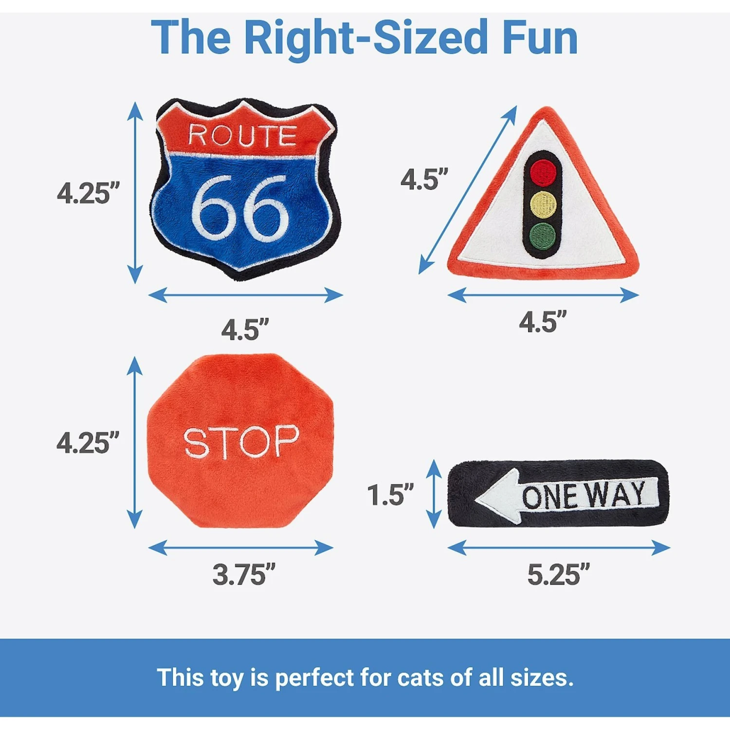 These signs point your kitty towards playtime! This four-count of road trip-themed toys will inspire adventure in any play session. They’re stuffed with catnip and crinkle paper to keep your feline friend excited about playtime, plus they make great interactive toys to help stimulate your kitty.